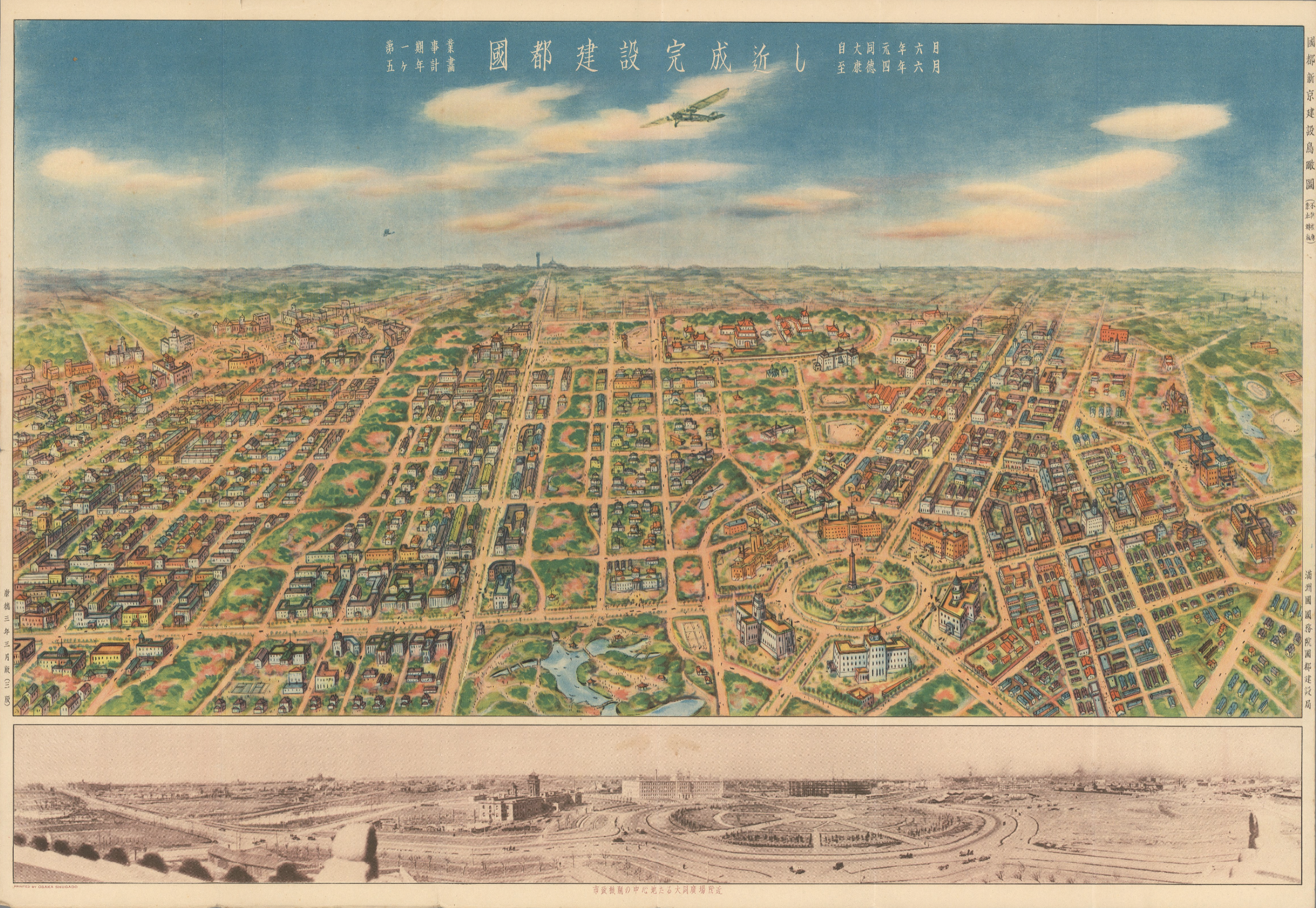 国都建設完成近し (Map of Shinkyo). State Council of Manchukuo. 1936. 大同广场 in the center right of the image.