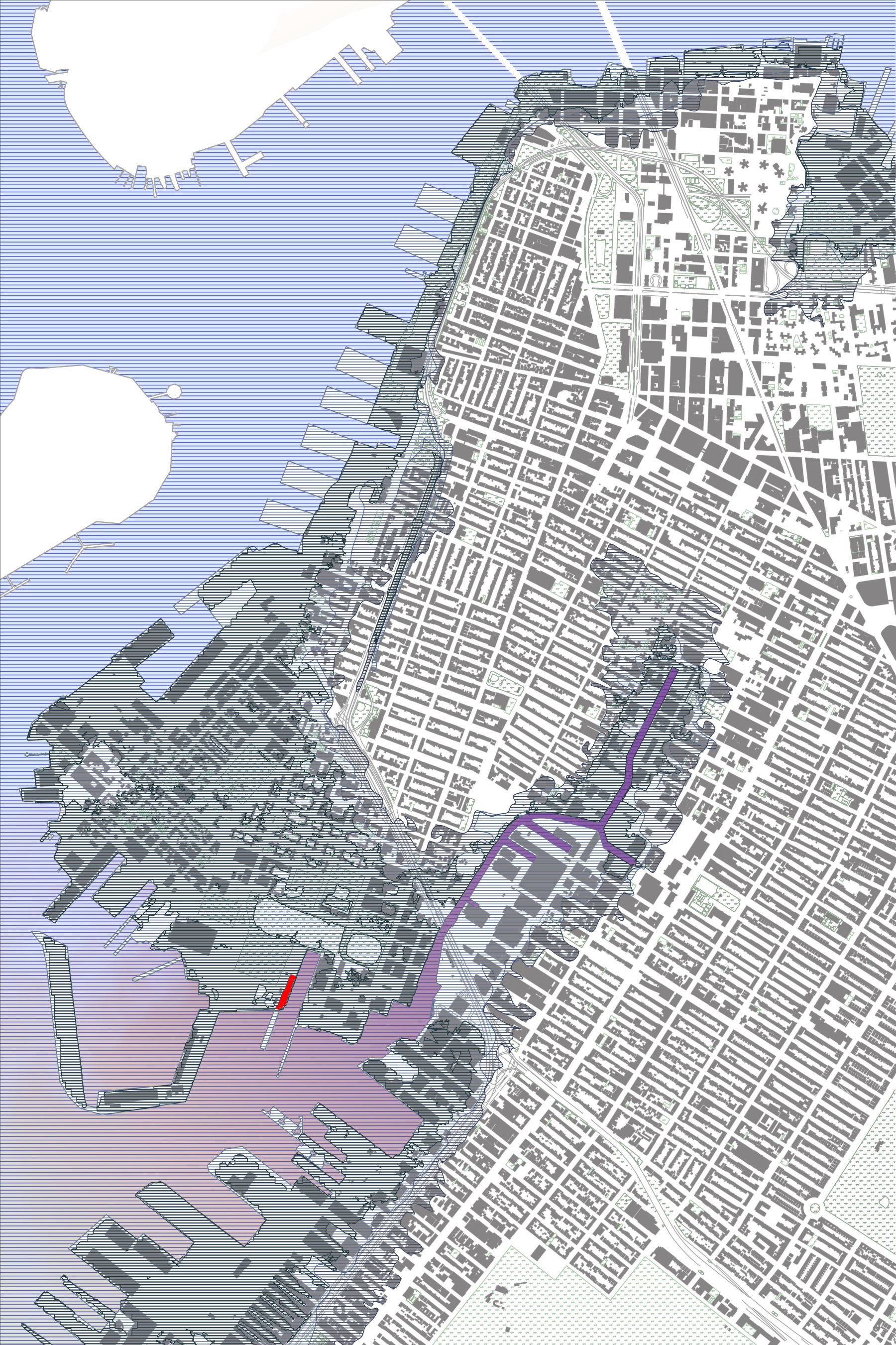 This project imagines the post-industrial coastline of Red Hook as a landscape of retreat, a littoral space of non-capital driven, ambigious programming that responds directly to the re-wilded conditions of urban coastal erosion. Animated by renewed interactions of native organisms, people begin to build in response.
