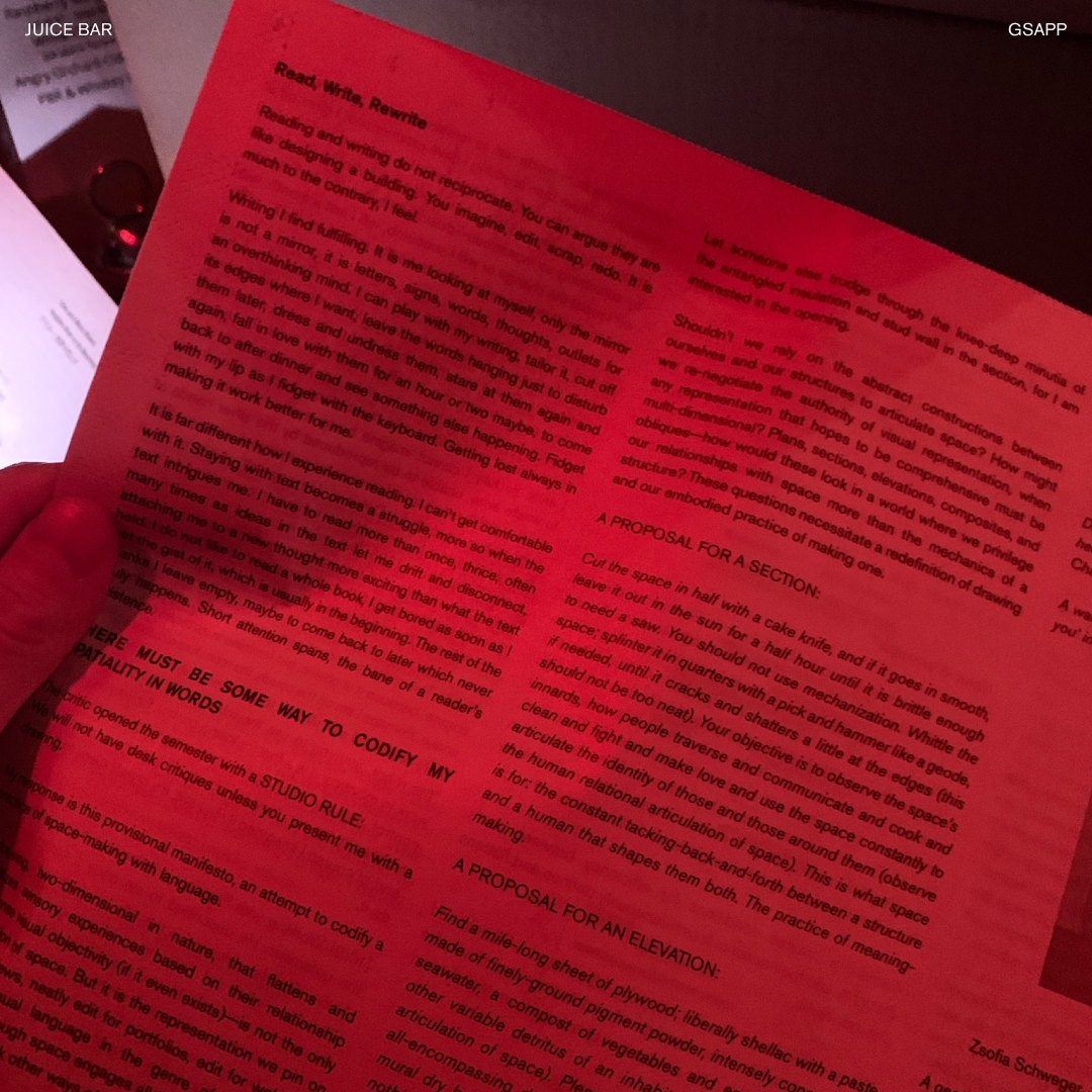a quarterly student publication that is interested in articulating, questioning, and altering the value of and relationship between language and design. It is an archive of what we are thinking, doing, and making at architecture school, and a place to talk about it.